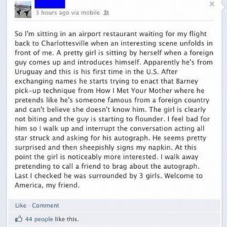 So I’m sitting in an airport restaurant waiting for my flight back to Charlottesville when an interesting scene unfolds infront of me.